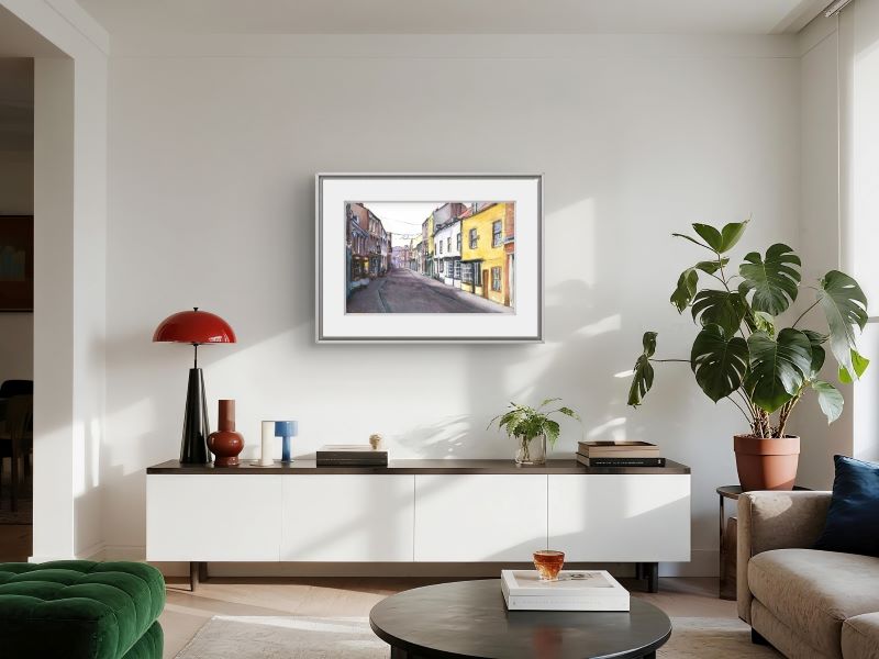 This watercolour brings to life a historic street in Bridlington's Old Town. The painting focuses on the charming, varied architecture...