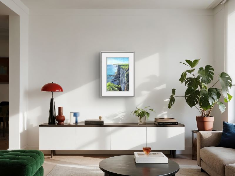 A stunning portrayal of the towering Bempton Cliffs, this painting focuses on the scale and natural beauty of the landscape....
