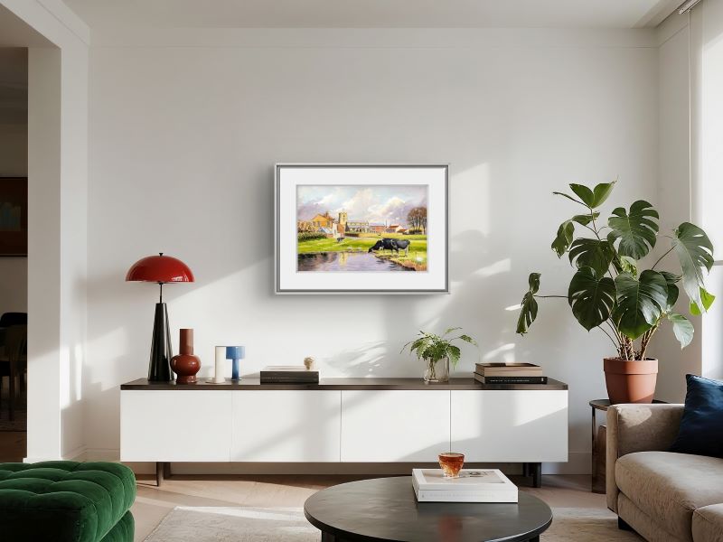 This tranquil watercolour that captures a peaceful view of Bempton village. The painting features cows and geese gathered by a...